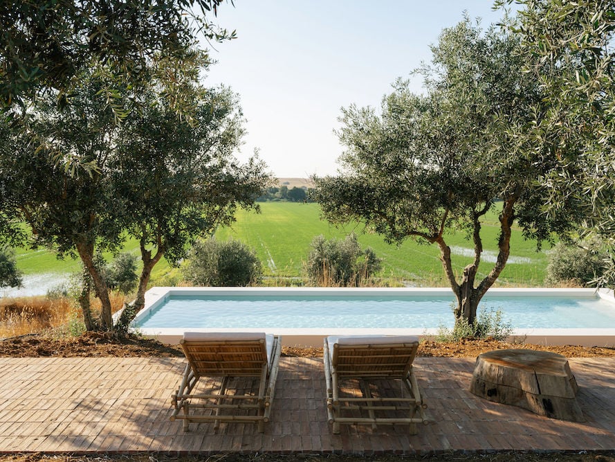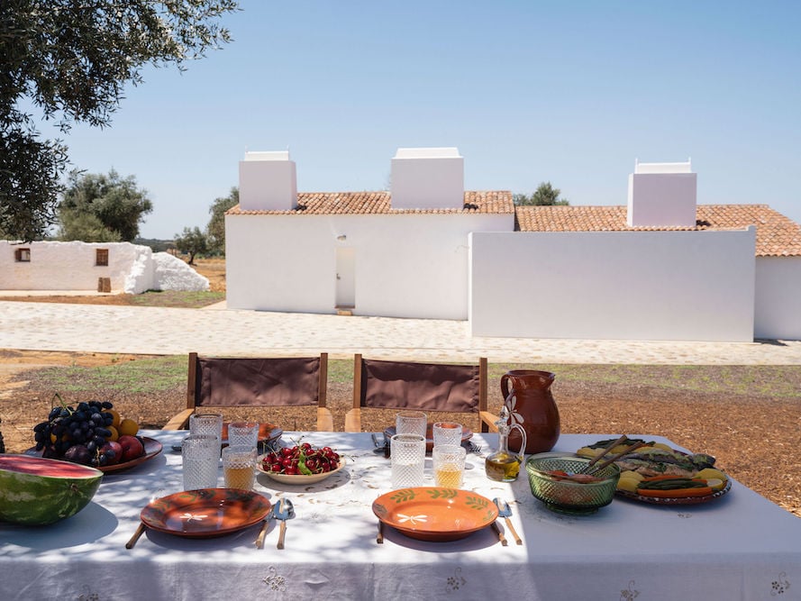 Surrounded by olive trees and the vast rice fields of the Alentejo, Montinhos is a small countryside estate with four accommodations spread across two white houses. The property is part of a landscape that has been in the same family for generations, including rice fields, olive groves, meadows, and cork oak forests.
