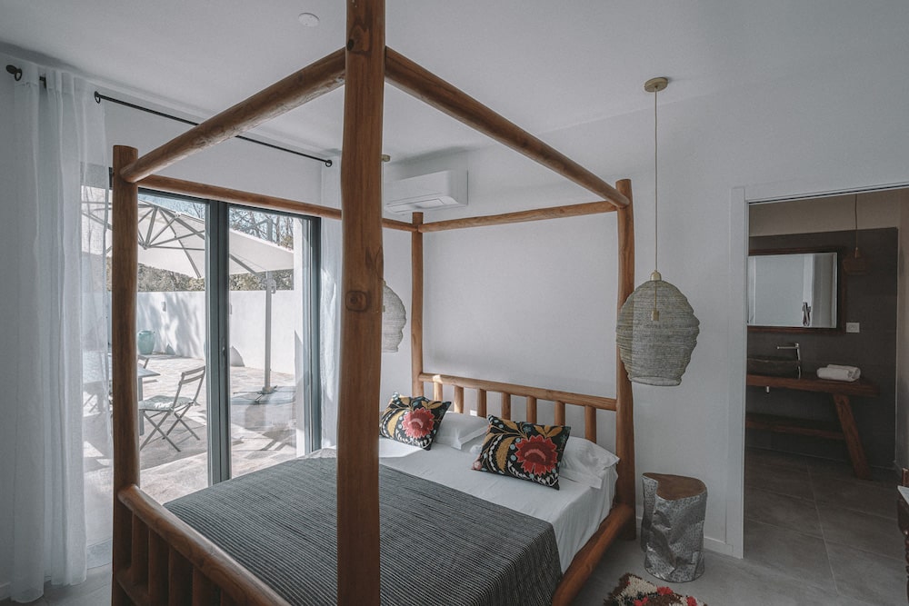 - There are 3 ensuite bedrooms, all with queen-size four-poster beds and outdoor access