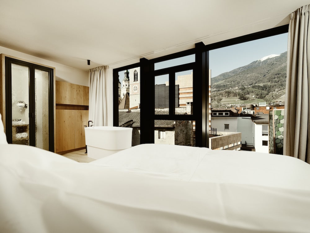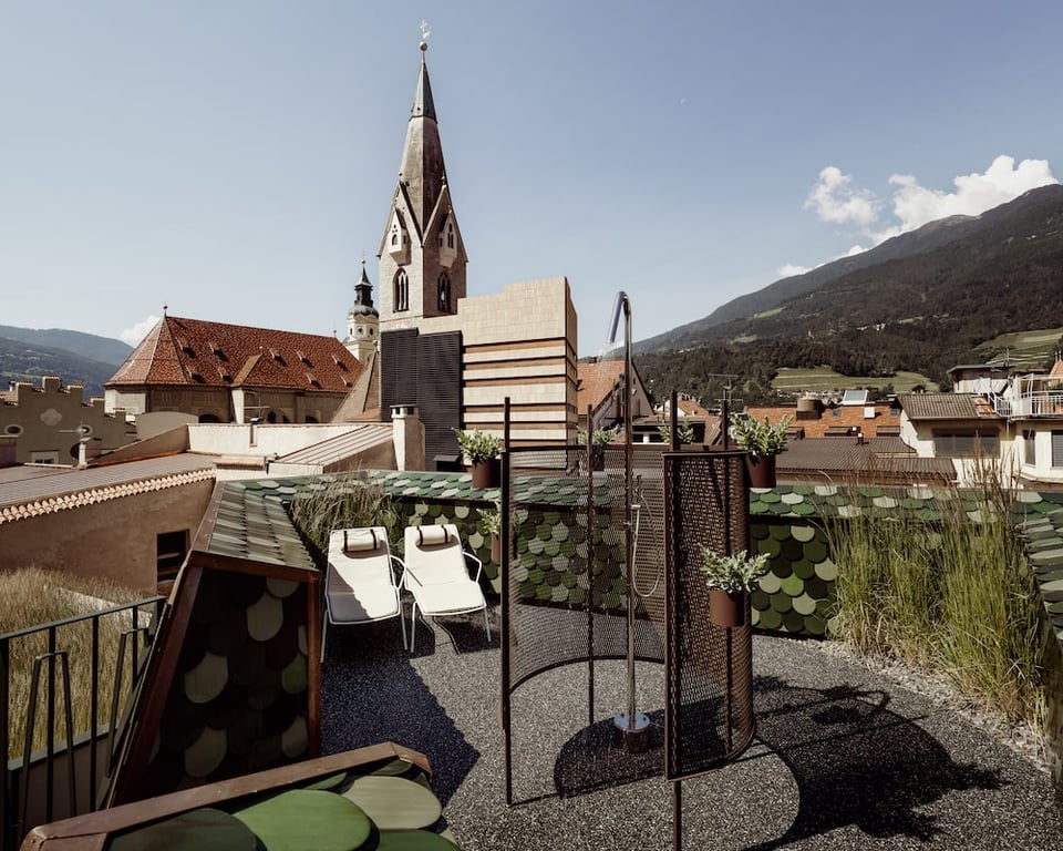 In the heart of Brixen, right by the riverside and surrounded by mountains, lies Adler Historic Guesthouse, a place where centuries-old charm meets contemporary design. Behind the historic façade of this 15th-century building awaits a stylish urban retreat with a rooftop pool, daytime bar, and sweeping views of the Dolomites. A warm and characterful place for those who appreciate culture, comfort, and elegance.