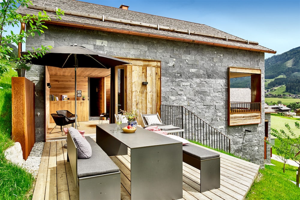 Auf da Leitn 8 is a modern Alpine lodge spread over 3 floors with a beautiful view of the surrounding mountain landscape. With 5 bedrooms, the house can accommodate up to 12 people.