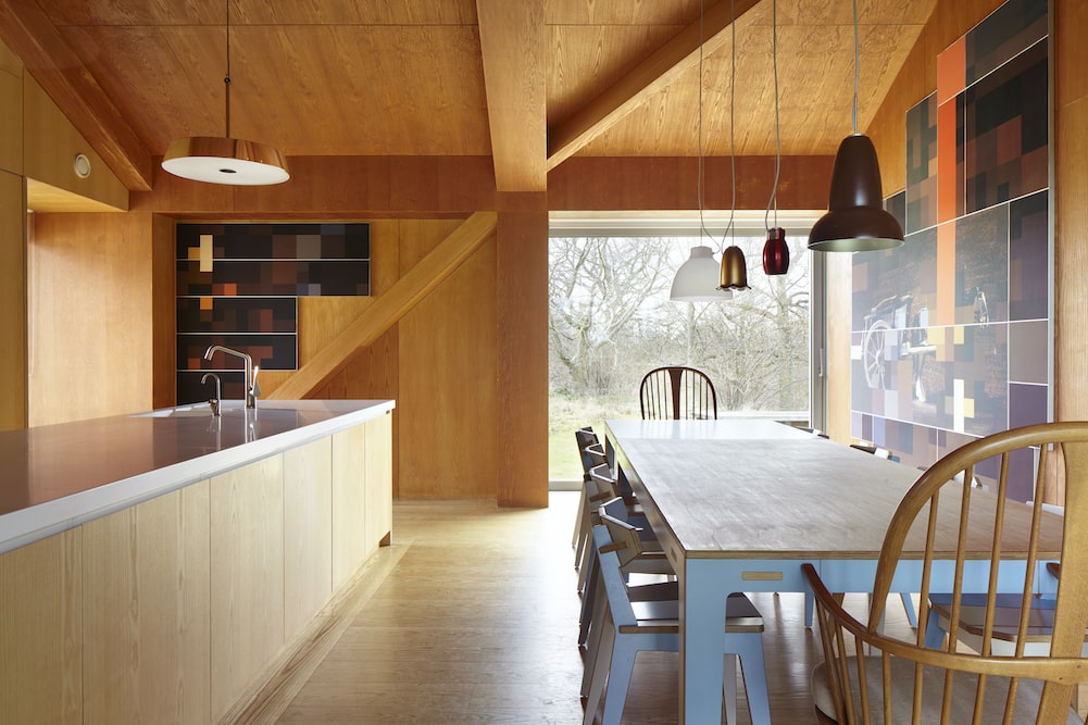 - You enter the house in the kitchen, which has a wooden dining table and is equipped with all facilities, including a convection oven, combination microwave, induction hob, fridge, freezer, dishwasher, kettle, toaster, washing machine, and dryer. In addition, you will find David Mellor (DM) kitchen knives, cutting boards, sieves and colanders, cooking utensils, a range of DM saucepans (suitable for the induction hob), food blender, scales, mixing bowls, a rolling pin, glassware (cups, wine glasses, champagne glasses), DM cutlery (including children's cutlery), a teapot and mugs. Finally, there are two cafetières for filter coffee and a Nespresso machine.