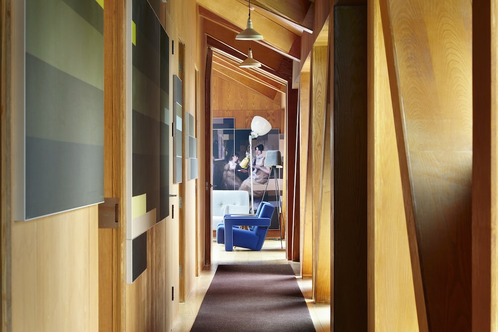 - A hallway leads to the living room (with a partial glass floor) on the other (floating) side of the house. Here are several sofas and comfortable chairs, also you find here a wood burner, a music system and lots of books!