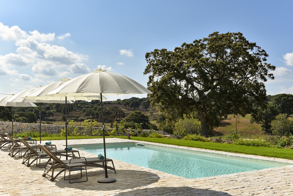Borgo Aratico is situated in the countryside of Puglia, surrounded by 15 hectares of gardens, oak forests, Mediterranean flora, fruit trees, and olive groves. The old typical Apulian farmhouse was meticulously transformed into a luxury country house, consisting of two 'parts', ideal for a holiday with two families or a group of couples.