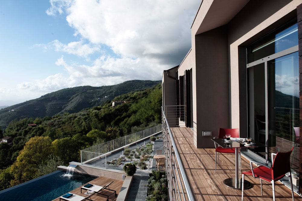 Owners Simon and Carmelo have made it their mission to renovate and modernize this converted 1970's house as 'green' as possible, with as light touch possible on the environment. Every detail is thought of, also as regards to interior, design, and comfort. After an extensive renovation of nearly three years they opened as a luxury bed and breakfast for guests last year, offering amazing views of Versilia and Corsica and a stunning saltwater infinity pool.