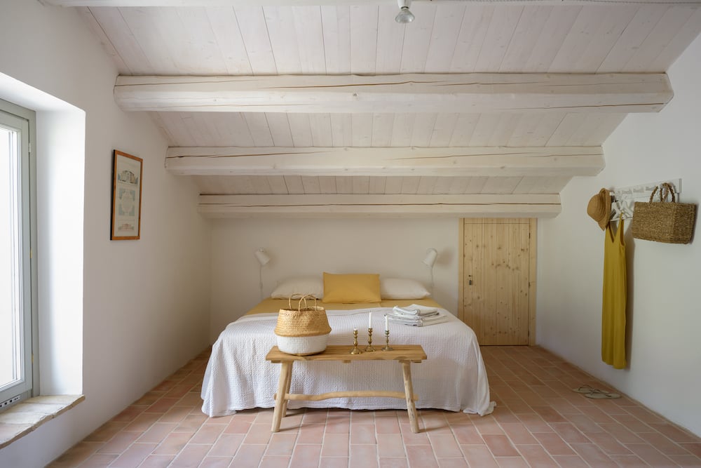 - 1 bedroom on the second floor with double bed (2 x 90 x 200 cm) and adjoining toilet with washbasin.
