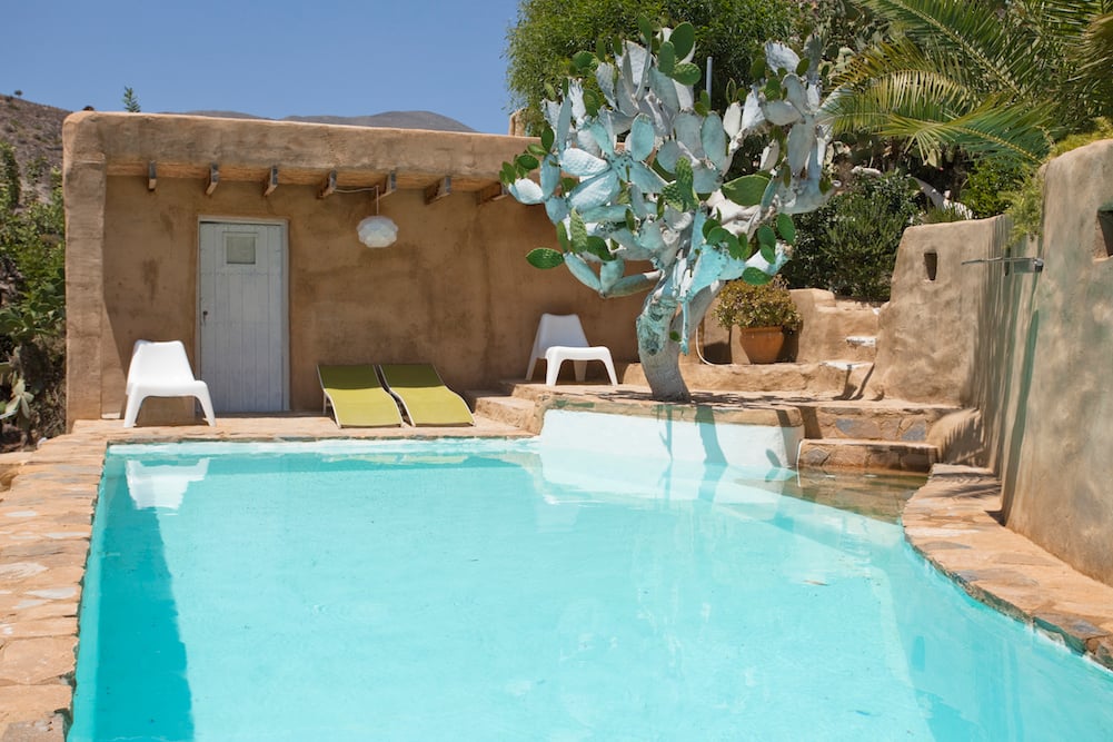 Its envitable location close to the sea, coupled with thick walls and lush, green gardens that help keep the heat at bay, make Casa la Chumbera Blanca the perfect summer getaway. Three fireplaces, two wood burning stoves (firewood supplied) and portable electric radiators mean that it’s equally suitable for those cooler months too. This delightful accommodation, which is absolutely ideal for a large family or group of friends wishing to holiday together, certainly ticks all of the boxes; plenty of internal and external space, a unique setting complete with beautiful gardens and swimming pool, and a tranquil location in the heart of Andalusia that’s still within easy reach of town and beach.