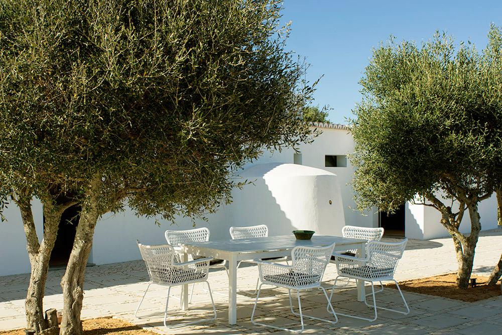 - Large, south-facing terrace with expansive dining table under the shade of the olive trees