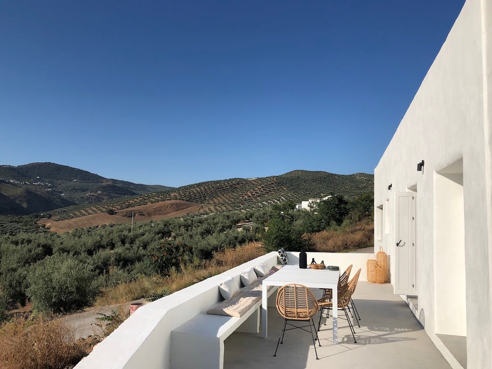 - The spacious terrace outside at the front of the house, where there is also a dining table overlooking the lake