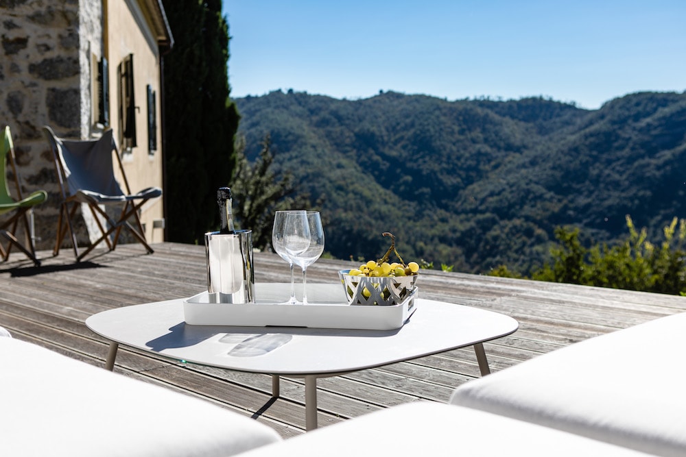This holiday villa has three separate floors and is surrounded by more than 4000 m2 of private grounds. Around the house, various terraces have been created, allowing you to enjoy sitting outside from early morning until late at night. For the renovation of the old construction, traditional materials were used, resulting in a luxury villa with a "contemporary" design. The villa is fitted with every imaginable comfort and its furniture consists of an attractive mix of vintage and design.