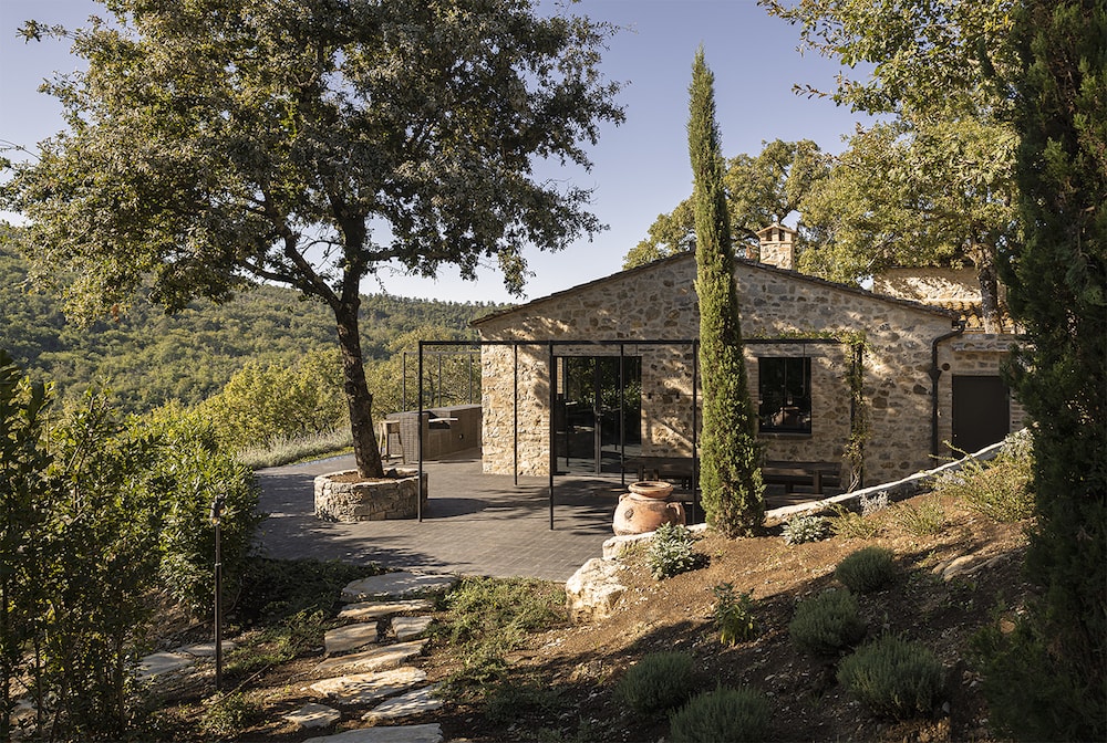 Casa Morelli has a panoramic position on a hill in the Tuscan Chianti region, surrounded by a typical landscape of rolling hills, cypresses, and vineyards. The renovated house has an authentic character and offers luxurious comfort thanks to the use of high quality (natural) materials and facilities both inside and outside.