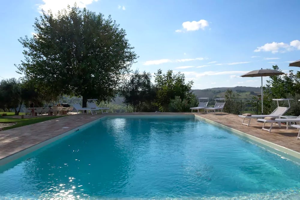 The tranquil holiday villa is beautifully situated on a strada bianca (country road). Surrounded by verdant hills, it also benefits from plenty of privacy. The nearest restaurant is only 1 km away and the lively village of Mogliano just 3 km distant. With a beach and beautiful walking areas within a half hour-drive, there’s certainly more than enough to keep everyone occupied!