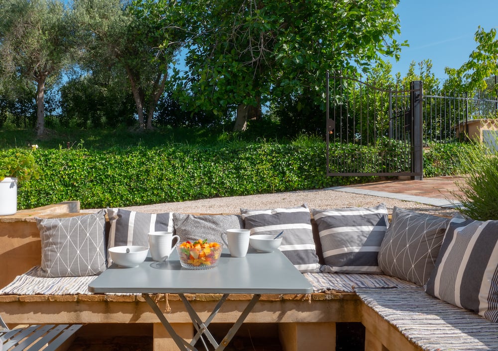 - A pretty garden that’s home to a variety of trees, including olive, nut and fig trees.