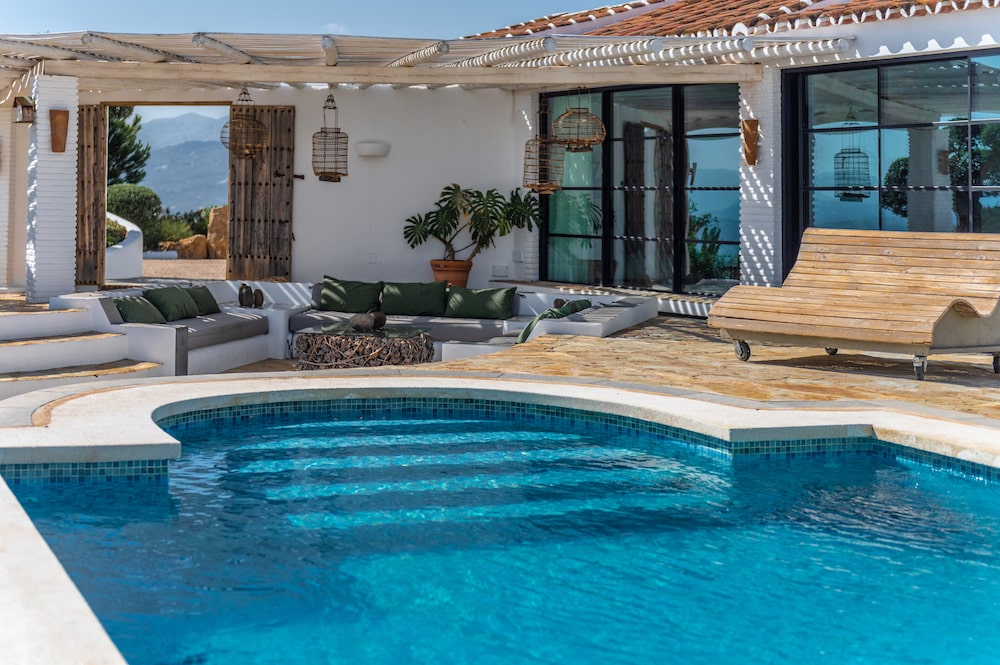 The centerpiece of the house outside, is the veranda, the perfect shady spot on hot days, with a long dining table, an outdoor kitchen with BBQ and wood oven, and a lovely lounge area. From one of the hammocks under a beautiful canopy, you can dive into the 10x4 meter swimming pool (which can be heated at an additional cost). The wonderful day beds invite you to daydream, the spectacular 360-degree view all around will help you with this. The lawn is wonderful for small children to play, and children are also very welcome in Casa Wils. Down in the garden is another terrace with a table tennis table, dart board, lounge, and kitchenette (for cold drinks!).