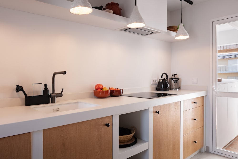 - Separate kitchen with a microwave/oven combination, hob, dishwasher, fridge/freezer, kettle, Nespresso, and citrus press.