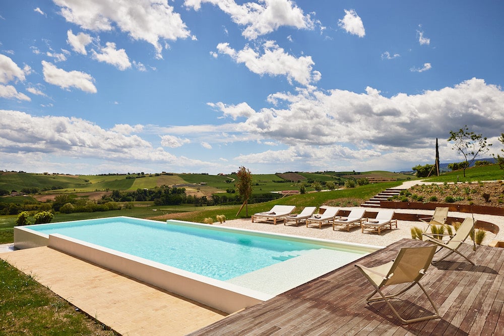 This boutique B&B has a total of 6 rooms, all with their own outdoor space and one attachted room to Corinaldo which can be rented as one for a family. The rooms are spread over the ground floor and first floor. All rooms are equipped with box-spring beds (180x200cm), air conditioning, heating, and the 5 bathrooms have a rain shower. There are no televisions in the rooms, but there is a library and you have access to wifi-internet both indoors and outdoors. The pool is generally heated from mid of April until mid of October to around 25 degrees.