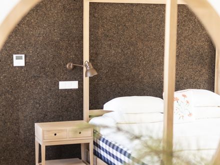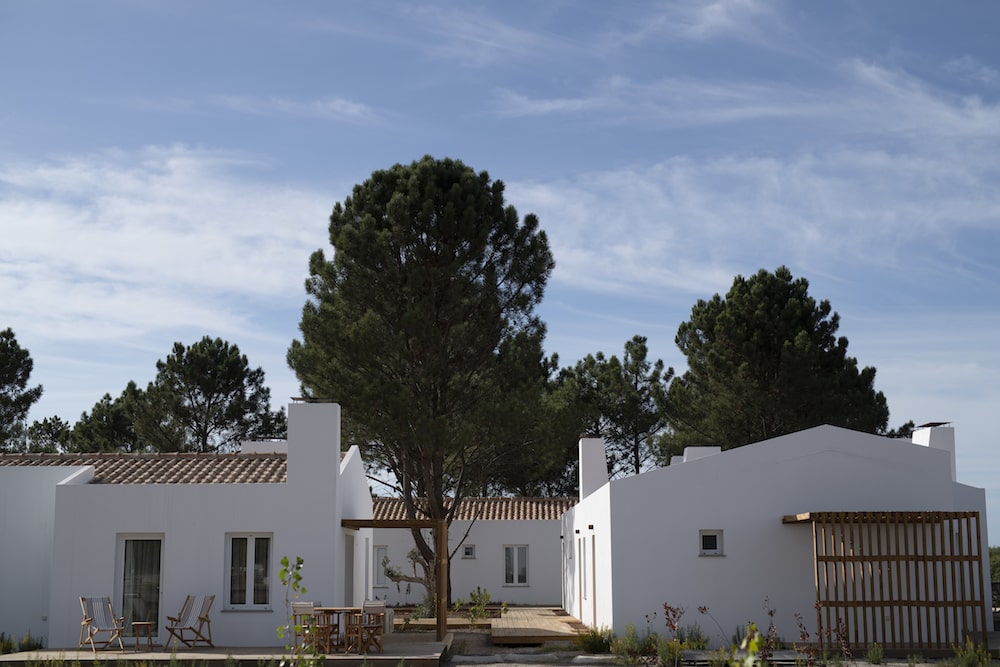 Farmstay Resort Craveiral is set on a 9-hectare estate and consists of four buildings connected by wooden walkways. The main building houses the reception, the restaurant, and the wellness center (with heated indoor pool, sauna). Spread over the other three buildings, you’ll find 38 accommodations—studios and holiday homes with one or two bedrooms. One of these buildings, the most distant from the main building, has a private swimming pool in its patio.