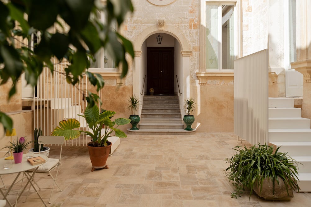 Distilia is a beautiful old palazzo that is centrally but quietly located in the village of San Cesario di Lecce. The completely renovated house has 4 apartments (for 2-4 persons) and 3 suites (for 2-3 persons), all of which have characteristic original elements, old restored floors, and carefully selected vintage and design furniture. The apartments and suites are equipped with a living area and a bathroom with a shower and some also have a private terrace or balcony.