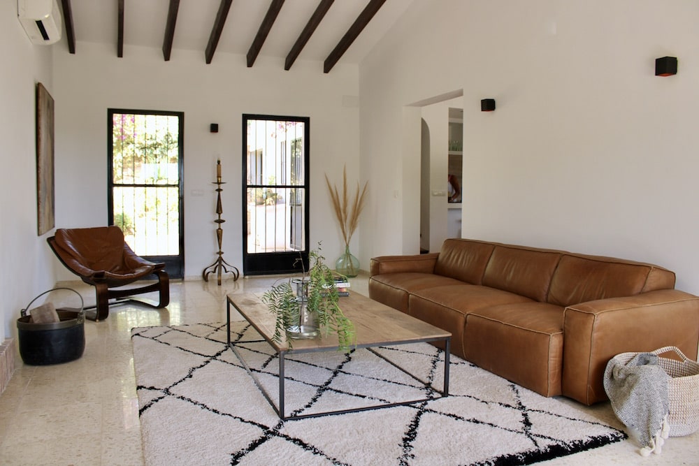 The house is situated on a land of 2400 m², quietly situated on a dead end road, in a green zone, with a view of the sea and the mandarin orchard. Behind this is the road that takes you to the beach.