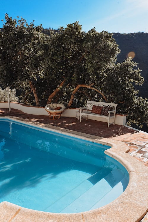 - Saltwater swimming pool (7 x 3.5 m) with a depth of 70-180 cm, a shaded seating area, and an outdoor shower. The swimming pool has a pool cover.