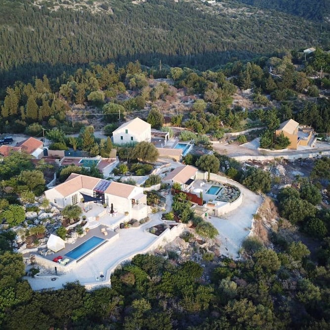Fiscardo Art Villas is a unique place to stay on the Greek island of Kefalonia. Each residence features a private garden, a private pool, a modern kitchen and restful bedrooms. In addition, each house has air conditioning, wifi, a smart TV and a bluetooth speaker. The houses are located on a private property of more than 1 hectare, situated in green surroundings on the coast of the Ionian Sea. The five different houses each have their own unique appearance, but they share same luxury and modern comfort.