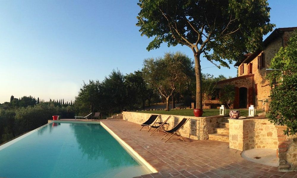 A charming holiday home in the perfect setting! Fonte Cicerum is situated in one of the most beautiful parts of Italy on the border of Umbria and Tuscany and boasts panoramic views over olive groves. Despite being only a short walk to the lovely village of Paciano, this fully renovated farmhouse offers total peace and privacy. The convivial owners live in nearby Il Fontanaro, where they’ll happily arrange various activities and experiences. Its unrivaled surroundings and generous internal and external spaces make Fonte Cicerum a particularly suitable holiday home for two families sharing, one large family, or those who simply require plenty of room.