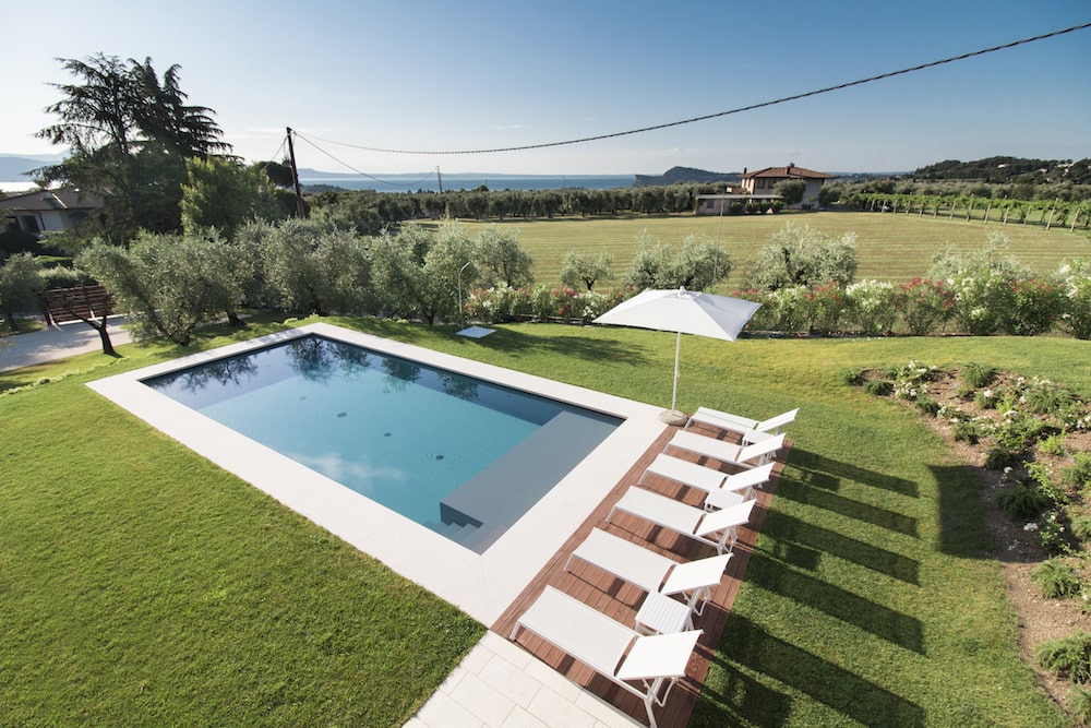 Il Giardino del Codirosso is an attractive detached house with an enclosed garden, a large lawn, and a swimming pool. It is quietly set and surrounded by olive trees. The home is only a 5-minute drive from a small beach on Lake Garda. The house can accommodate 10 people and is spread over two floors. On the top floor, you will find a panoramic balcony with a view of the lake.