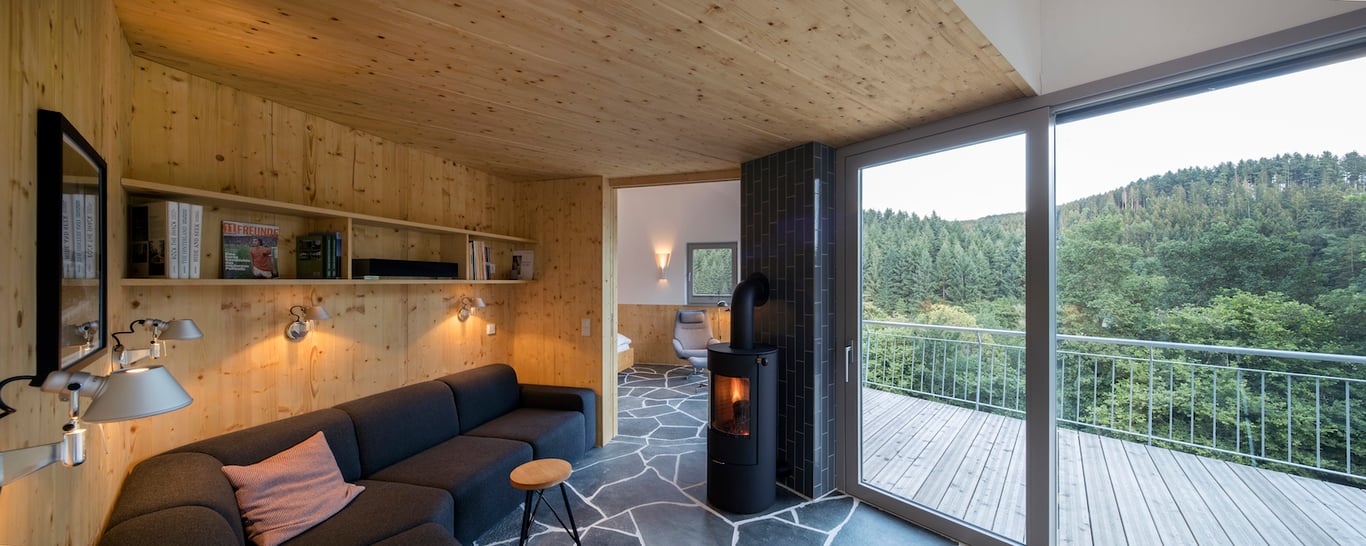 The Kleines Vulkaneifelhaus is surrounded by 10,000 m2 of meadows and forests and offers beautiful views of the valley. Surrounded by all modern comfort, this is a special and intimate getaway for two in the middle of nature.