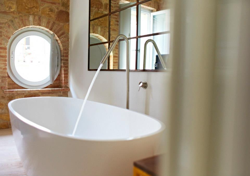 All 12 rooms are unique and come in different shapes and sizes. There are three types of rooms (Standards, Superiors, and Suites); whichever your choice, you will feel contented. All rooms have a warm, natural atmosphere thanks to the original elements such as the perfectly restored wooden beamed ceilings, stone walls and warm parquet flooring that alternate with modern design elements. The overall effect is light and bright; it is hard to imagine that these were once the rooms of the nuns. The king-size beds, some four-poster, all are dressed in luxurious linens. There is a minibar with complimentary soft drinks, a large flat-screen TV, an Illy espresso machine, air conditioning and WIFI. The gorgeous bathrooms come with a walk-in rain shower and have thick towels, bathrobes, Ortigia luxury care products, a hairdryer and some rooms also have a bathtub.