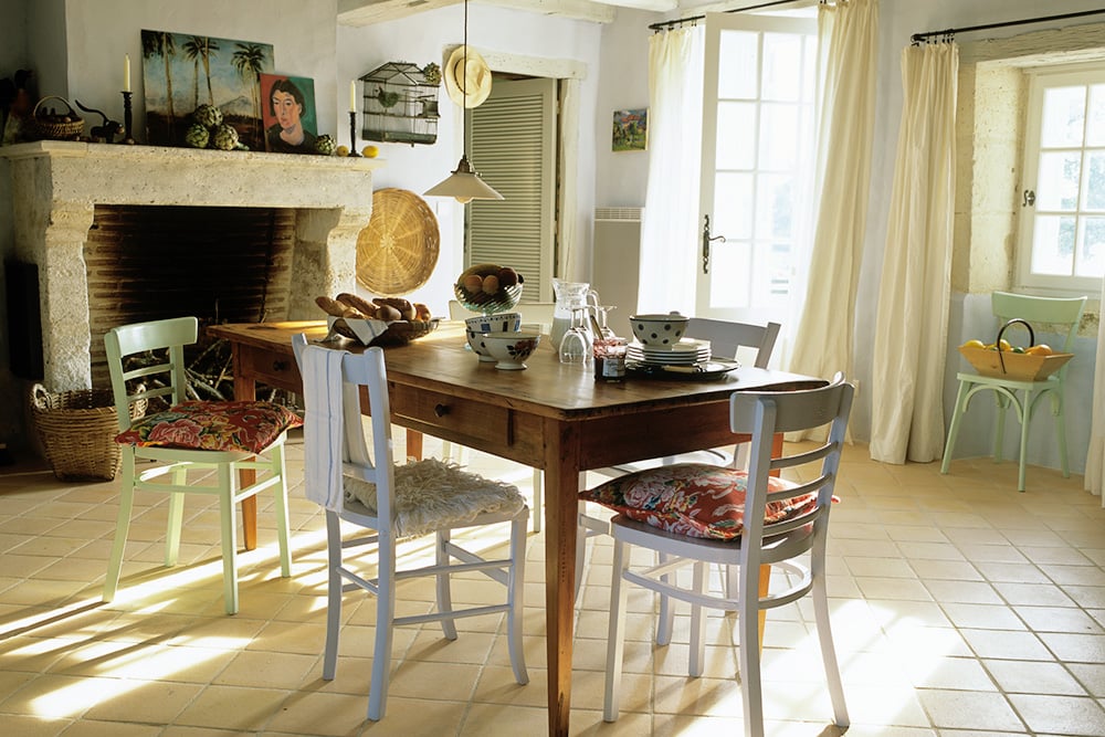 - Large living (42 m²) with beautiful French windows, patio doors, and high ceilings with original oak beams. An area full of light where the original fireplace and various artworks of local artists can be fully appreciated.