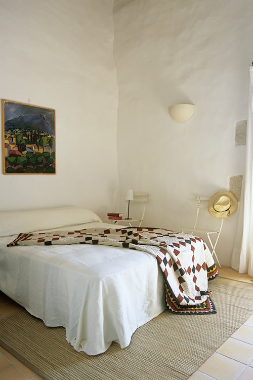 - Cozy double bedroom finished with original wooden beams on the walls and ceiling.