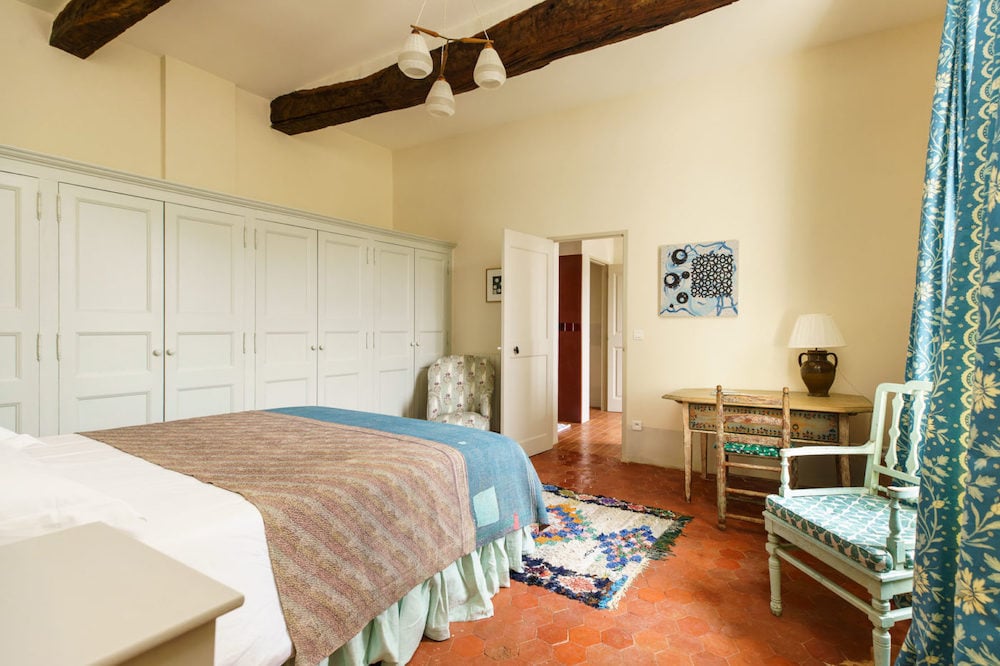 - Four bedrooms with private bathrooms, one of which is located in a small studio that is accessible from the garden. This bedroom also has a sitting area with a couch.