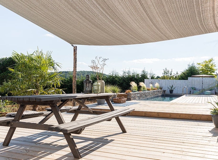 - On the other part of the terrace, stands a picnic table under a 5x5m shade cloth.