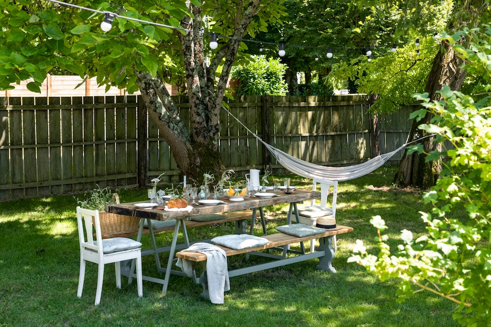 - Several loungers and chairs in the shade of the trees, as well as a hammock and a swing)