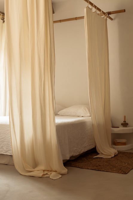 - Sleeping area with queen-size bed, hotel-quality duvet and pillows, linen bed linen and a romantic canopy
