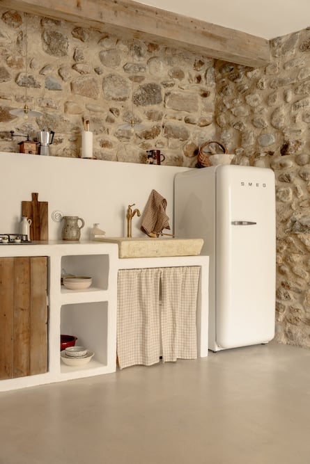 - Fully equipped kitchen with Mediterranean character, finished in lime plaster and complemented by exposed stone walls