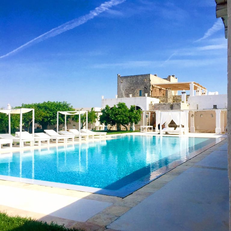This sixteenth-century Masseria originally belonged to the powerful Imperiali family. Enviably set in a country estate surrounded by endless olive groves and vineyards, it’s conveniently close to the historic town of Manduria and only five kilometres from the sea with its infinite dunes of golden sand.