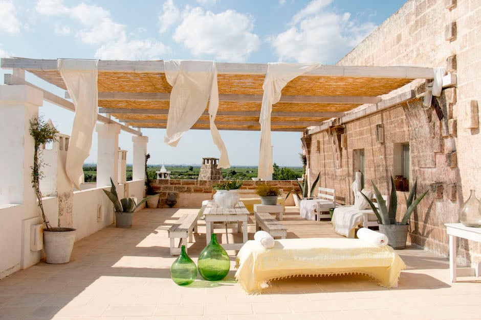 The property is flanked by the original buildings, which have been tastefully converted into simple, elegant guest rooms. The whitewashed walls of the old farmhouse reflect the intense Southern Italian light and provide a beautiful contrast to the stark Mediterranean landscape. The 18 hotel rooms and apartments boast their own fireplace and private terrace overlooking lush gardens brimming with flowers and fruit trees. There’s also a large shared swimming pool with plenty of space for all. The lovely restaurant serves up traditional home-cooked fare in a friendly and informal setting. There is even a heated swimming pool in the spa