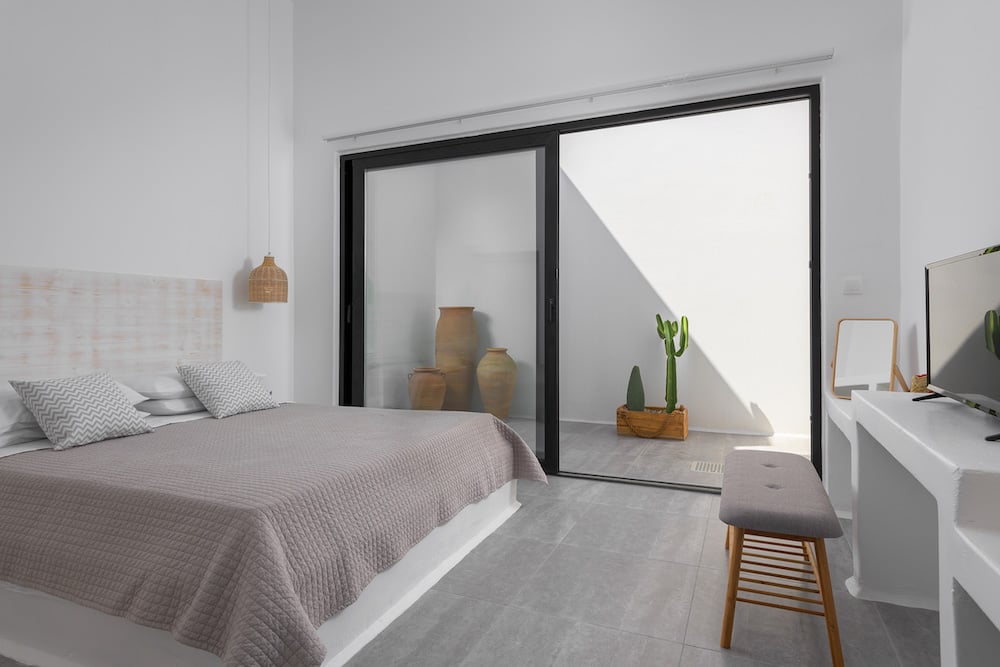 Mea Terra consists of two independent single-story villas a stone's throw from the beach. Both villas are modernly furnished and have a fully equipped kitchen, a spacious living room, a modern bathroom and one or two bedrooms for two people. In both villas, a spacious sofa(bed) can accommodate an additional two people. Outside is a covered terrace with a dining table and a private swimming pool where you can cool off after a day at the beach, which is literally a stone's throw away!
