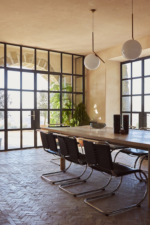 In the morning, a healthy breakfast is served and guests have access to the infinity pool with sun loungers and an inviting living room inside with a large table, comfortable sofas, and a fireplace where you can enjoy social moments.