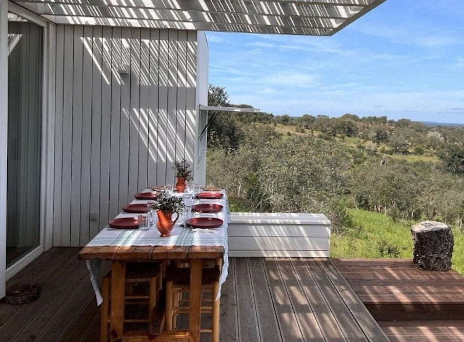 Monte das Casolas offers 5 wooden houses, similar in size and 1 bigger house. Layout and all equipped with modern comfort and a private deck terrace. The houses are completely immersed in nature and offer plenty of privacy, ideal for a relaxing holiday with friends or families with children who will find plenty of space to play and discover.