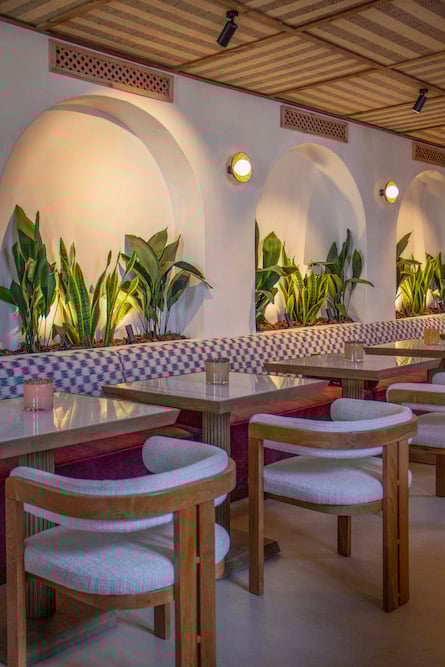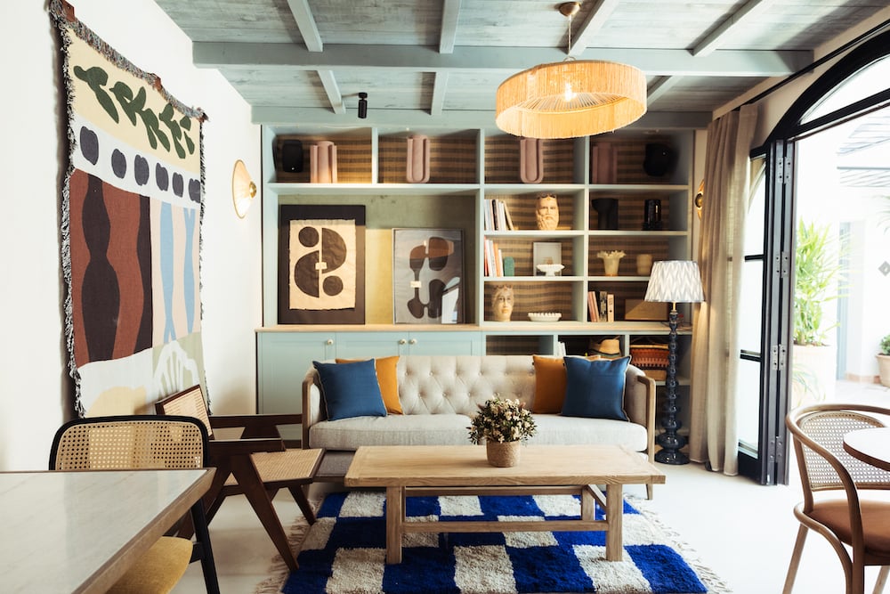 Carefully restored by Nomad Hotel Collection, the property blends traditional elements with contemporary design: clay, wood, and linen in soft tones, chukum plaster from Mexico, and handmade ceramics from Morocco and India. Every detail, from the woven lamps from Tunisia to the bespoke furniture, embodies calm, simplicity, and refined craftsmanship.