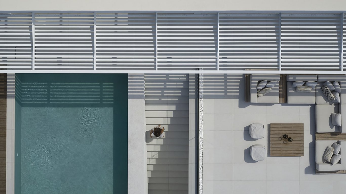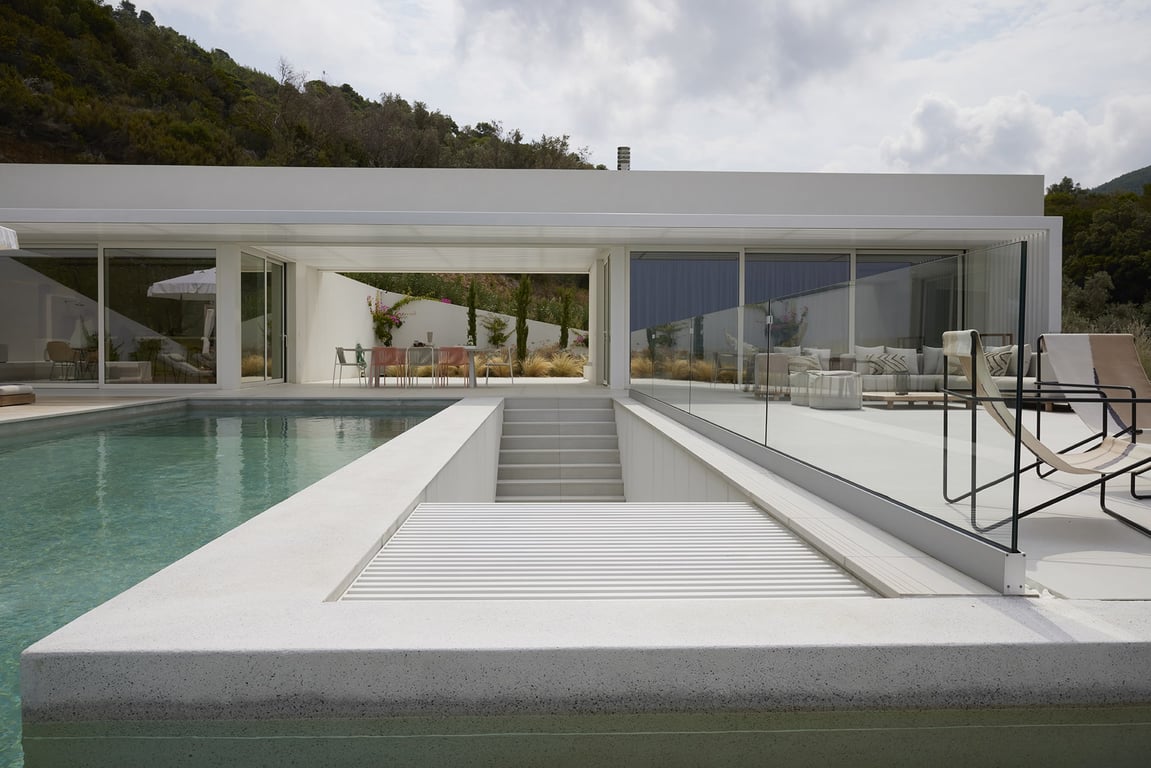 - Adjacent to the living room is a large lounge with various spots to enjoy the sun.