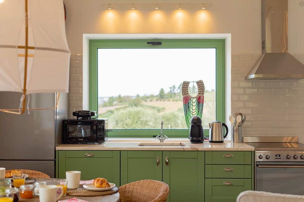 Striking are the authentic outside walls and green coloured kitchen, doors and window frames. Inside you will find a cosy house with comfortable rooms and beautiful art. Quinta do Cedro features: