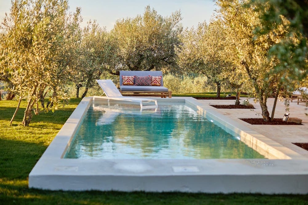 - Swimming pool with next to it a comfortable lounge sofa