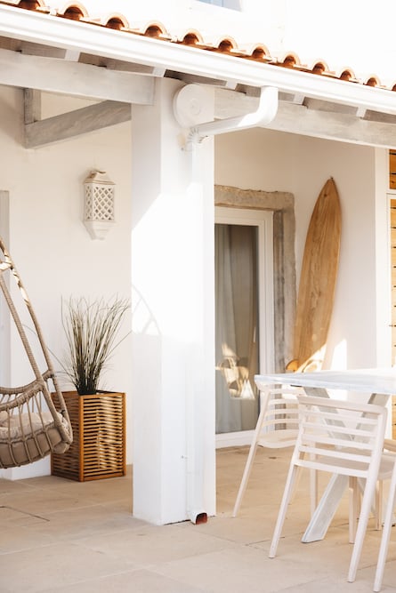 Sea'Ya has seven independent Family Surf Houses: Villa Guincho (6 people), Villa Cresmina (6 people), Villa Abano (3 people), Villa Figueira (4 people), Villa Marinha (4 people), Villa Juso (12 people), and Villa Areia (6 people). The houses all have an attractive open living room, a fully equipped kitchen, 1-5 bathrooms, 1-5 bedrooms, and a private outdoor terrace with an outdoor shower (hot water), dining table, lounge sofa, and parasol. The houses have air conditioning, WiFi, high-speed internet, and bathrobes, and organic personal care products are available in the bathrooms. Fresh bread can be delivered every day, in addition the owners can arrange additional services and activities upon request.