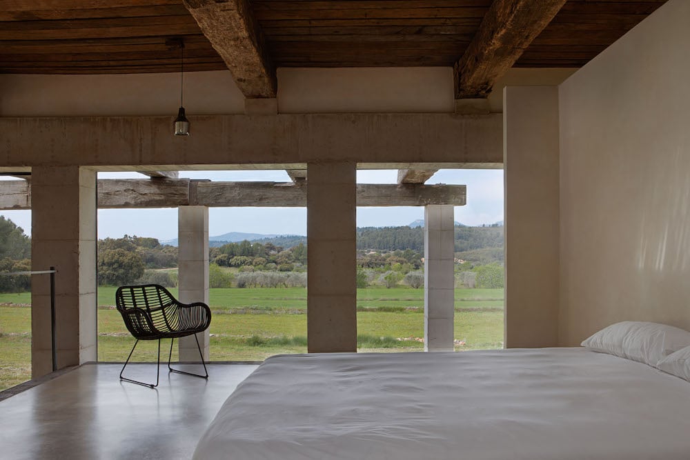 Xander Spronken loves "pure things" and that is reflected in the architecture of this villa. Six-meter-high concrete columns greet guest on the estate. Raw concrete, unpainted wooden beams, wrought iron hinges and frames, and panels of glass are the essential elements of the house that are visible everywhere. The open and lofty design offers air and space in the noblest sense while the play of light contributes to the warm atmosphere.