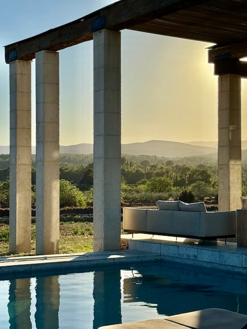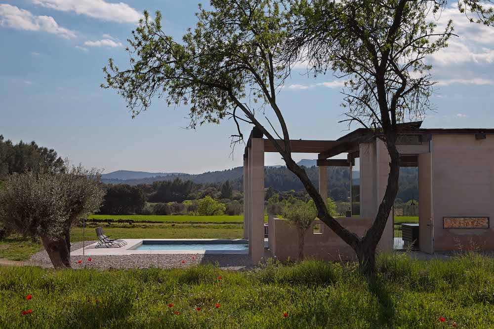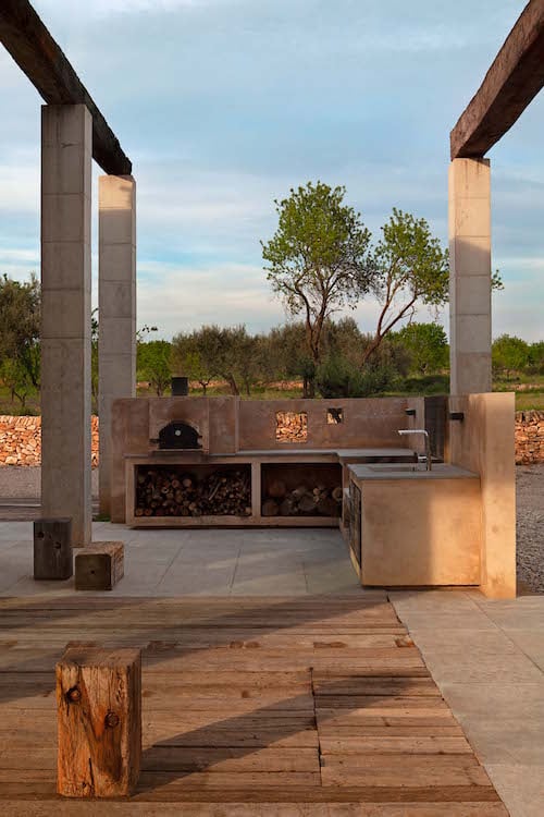 - From the kitchen, a ceiling-high door opens onto the terrace with a wooden deck as well as a lounge set and sun chairs. Next to the terrace is the private pool with outdoor shower and is the outside wood oven a perfect spot to make a traditional paella or pizza.