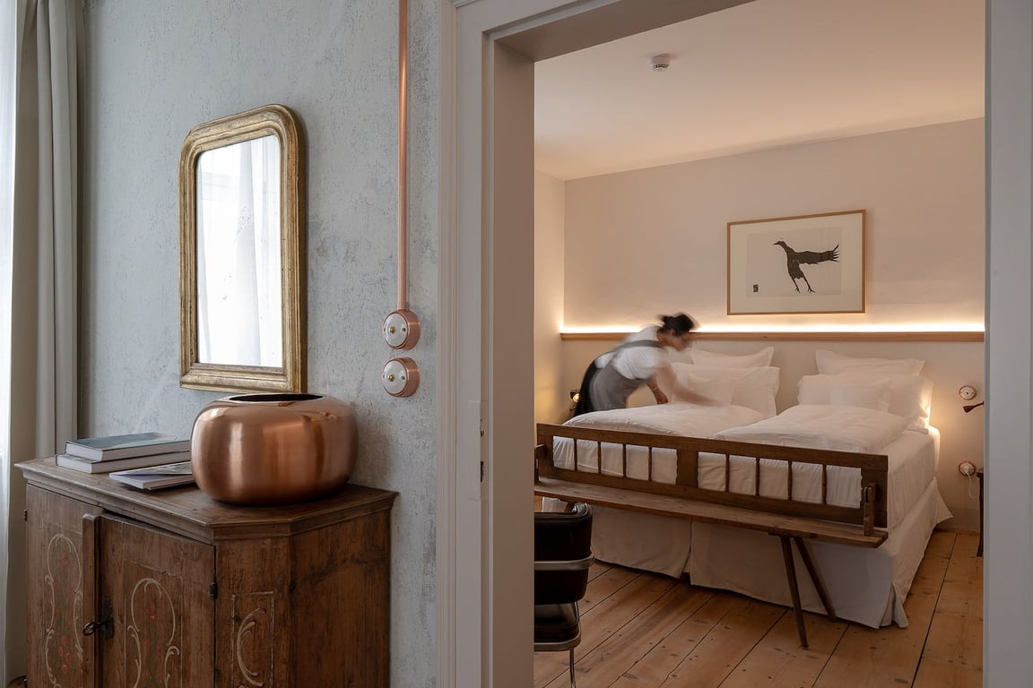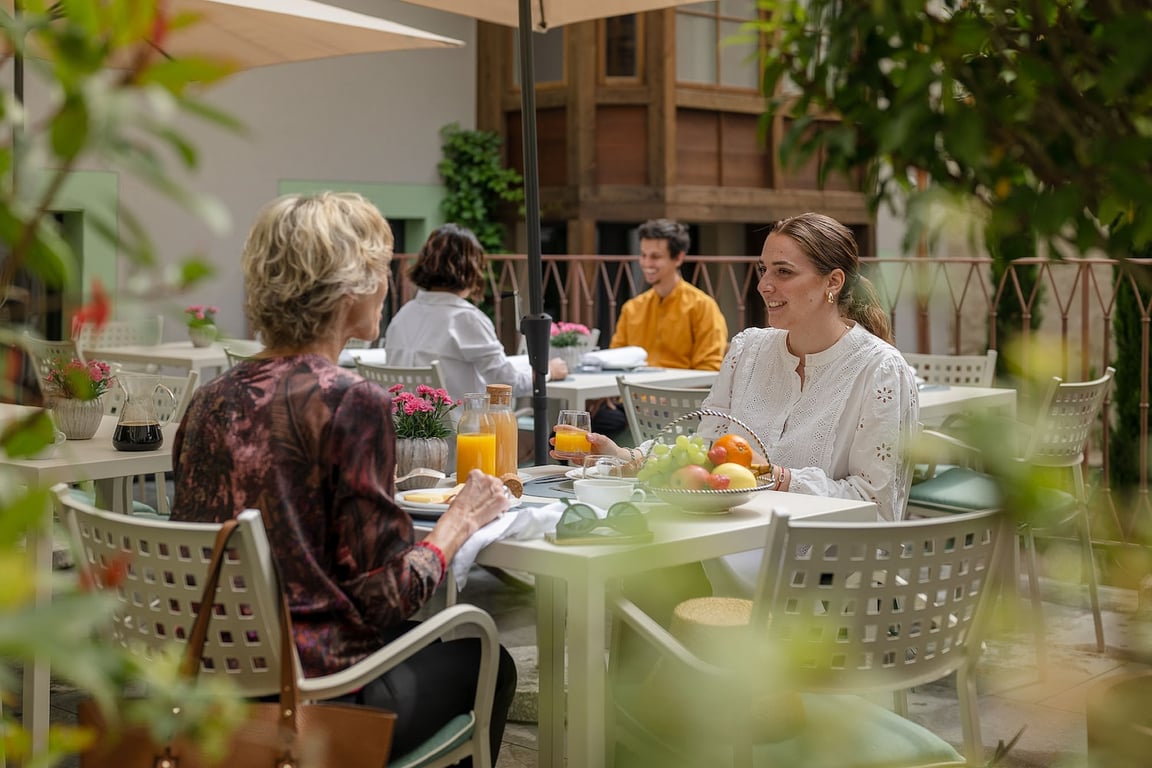 Steinach Townhouse Meran has 11 suites for 1-4 people, all luxuriously equipped with an extra comfortable hypoallergenic double bed with Tyrolean duvets, pillow sets, and fine linen as well as a cozy living room (with a sofa bed). The bathroom (with a window) has a large shower, bidet, hairdryer, bathrobe, slippers, extra soft sponges by Rivolta Carmignani, and body care products. The suites are also equipped with air conditioning, satellite TV, Wi-Fi, a safe, a coffee maker, and a kettle.
