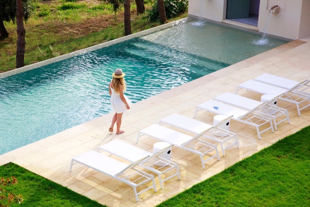 The owners of Tenuta dell'Alto have completely renovated this exclusive villa to bring back its original beauty and revive it. Most rooms have vaulted stone ceilings typical of this area in Puglia and concrete floors. The exterior is an example of neoclassical architecture from the beginning of the 19th century, featuring beautiful stones, large proportions, and unique details.