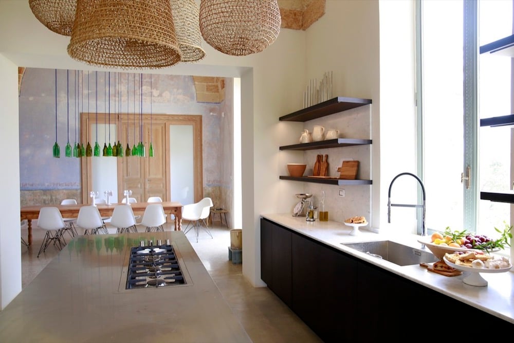 The kitchen is the heart of the villa and is connected to the outdoor terrace, the dining room, and the gardens with its splendid views of the valley. It is equipped with all modern comforts to satisfy even the most talented chef. The outdoor terrace can comfortably accommodate 12 people around a rustic table. This is the place where you will probably savor most meals while sipping a Primitivo wine from the basement and enjoying the outdoor fireplace. It doesn't get much better than this to taste the beauty and charm of the Dolce Vita of Puglia!